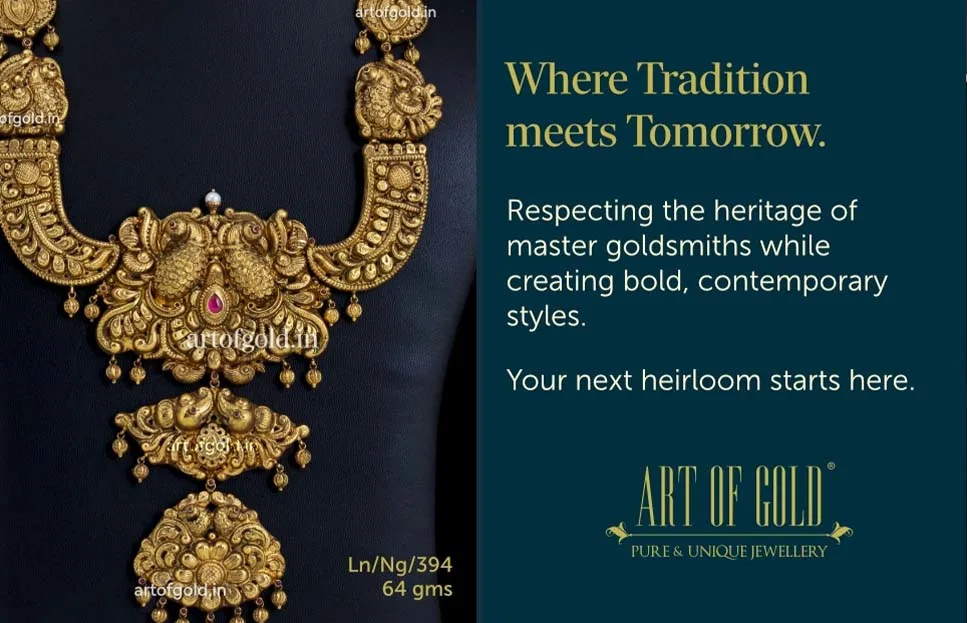 Founded in 2009 by Satakopan, Art Of Gold is a renowned jewellery brand based in R.S. Puram, Coimbatore. We specialize in handmade jewellery for both men and women, crafted with precision and passion by our own skilled artisans. At Art Of Gold, every jewel is a masterpiece — we never outsource our creations, ensuring each design reflects authenticity, craftsmanship, and timeless beauty. Visit us at Ponnurangam Road West, Coimbatore, to experience jewellery that truly tells a story of art, tradition, and elegance.